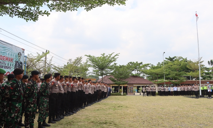 DEMAK || Portaljatengnews.com – Kepolisian Resor (Polres) Demak, Jawa Tengah, menggelar apel siaga pasukan gabungan untuk mengantisipasi potensi unjuk rasa yang beredar di media sosial. Apel yang melibatkan 400 personel gabungan dari Kodim 0716/Demak dan Polres Demak ini dilaksanakan di Lapangan Wicaksana Laghawa Polres Demak, Selasa (2/9/2025) siang.