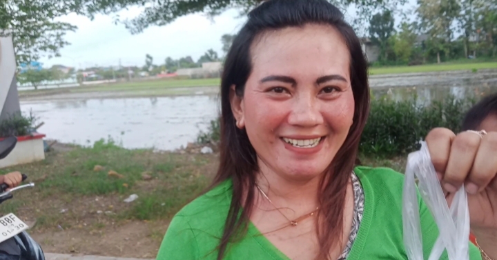 Eni, warga Sambak, Purwodadi, usai terima takjil gratis.