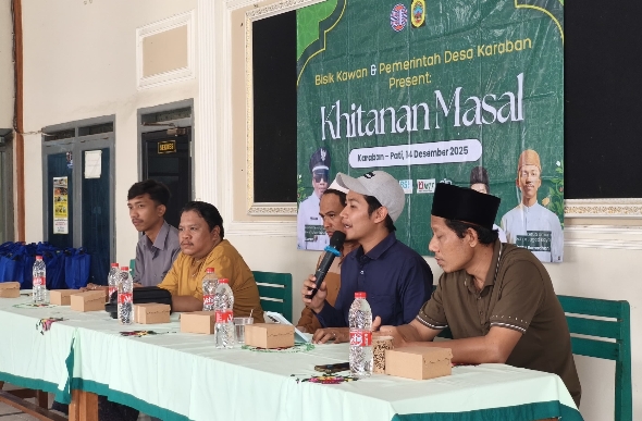 PATI || Portaljatengnews.com – Lembaga sosial Bisik Kawan sukses menggelar kegiatan Khitanan Massal Gratis yang dirangkaikan dengan Santunan Anak Yatim pada hari Minggu, (14/12/2025), di Balai Desa Karaban, Kecamatan Gabus, Kabupaten Pati. Kegiatan tersebut diikuti oleh 50 anak yatim dan dhuafa, yang menerima layanan khitanan gratis, bingkisan, uang tunai, serta paket konsumsi.