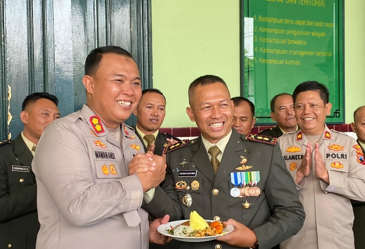 Kapolres Blora, AKBP Wawan Andi Susanto, didampingi Pejabat Utama (PJU) Polres Blora, berjalan kaki dari Kantor Satlantas menuju Markas Kodim 0721/Blora sambil membawa tumpeng. Kedatangan rombongan disambut hangat oleh Dandim 0721/Blora bersama para pejabat dan personel Kodim. Kejutan ini juga disusul oleh kedatangan Bupati Blora, Ketua Pengadilan Negeri Blora, serta Sekretaris Daerah (Sekda) Blora.
