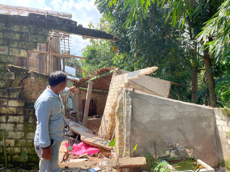 Peristiwa bermula sekitar pukul 04.30 WIB saat AK (31), salah satu pemilik rumah, mendengar suara retakan pada bangunan. Mengetahui tanah mulai amblas, ia segera mengevakuasi anak dan istrinya keluar rumah.