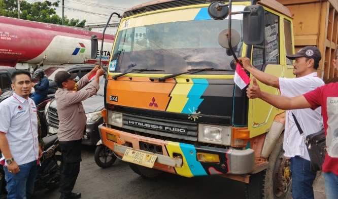 Sebanyak seribu (1000) bendera dibagikan secara gratis kepada pengendara kendaraan bermotor, disertai ajakan untuk bersama-sama menghidupkan makna kemerdekaan dan menjaga persatuan bangsa. (Putra)