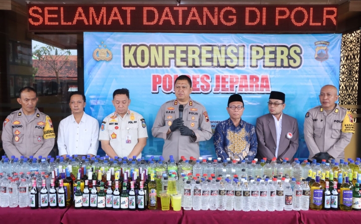 “Selama periode itu, Polres Jepara beserta Polsek jajaran berhasil mengamankan barang bukti, terutama minuman keras (miras) berbagai jenis dan merek dengan jumlah 2.707 botol dan 2.769 liter miras oplosan,” ungkap Kapolres Jepara AKBP Hadi saat menggelar konferensi pers didampingi pejabat utama, pemerintah daerah dan perwakilan tokoh agama serta tokoh masyarakat di Mapolres setempat, Jumat (13/2/2026).