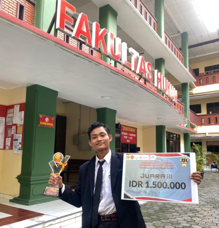 SEMARANG || Portaljatengnews.com – Moh. Yunus, mahasiswa Fakultas Hukum Universitas Semarang (USM) angkatan 2023, berhasil meraih prestasi membanggakan dengan menyabet dua gelar juara di tingkat regional. Yunus meraih Juara 1 Lomba Essay Law Fest Unwahas dan Juara 3 Lomba Karya Tulis Ilmiah (KTI) mahasiswa se-Jawa Tengah dan DIY. Keberhasilan ini menjadi sorotan karena diraih di tengah kesibukannya yang padat dalam berbagai organisasi.