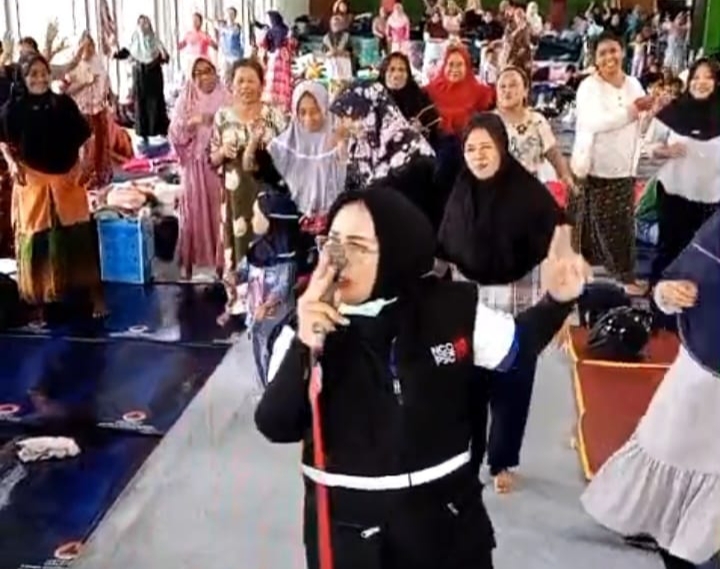 Monitoring Kesehatan Pengungsi Banjir, Titik Olivia Ajak Senam Kreasi Untuk Trauma Healing
