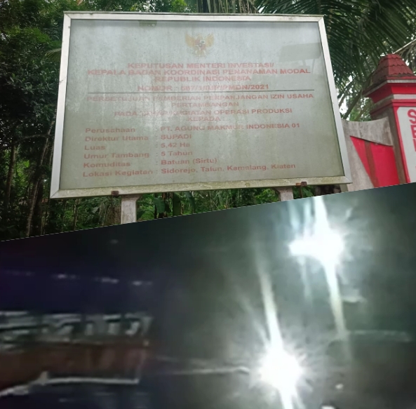 Berdasarkan pantauan langsung di lapangan pada Kamis (19/2/2026) malam, lokasi pelanggaran teridentifikasi yang diduga dilakukan oleh PT Agung Makmur Indonesia 01, di mana wilayah operasional tambangnya mencakup dua desa yaitu Desa Sidorejo dan Desa Talun, Kecamatan Kemalang, Kabupaten Klaten.