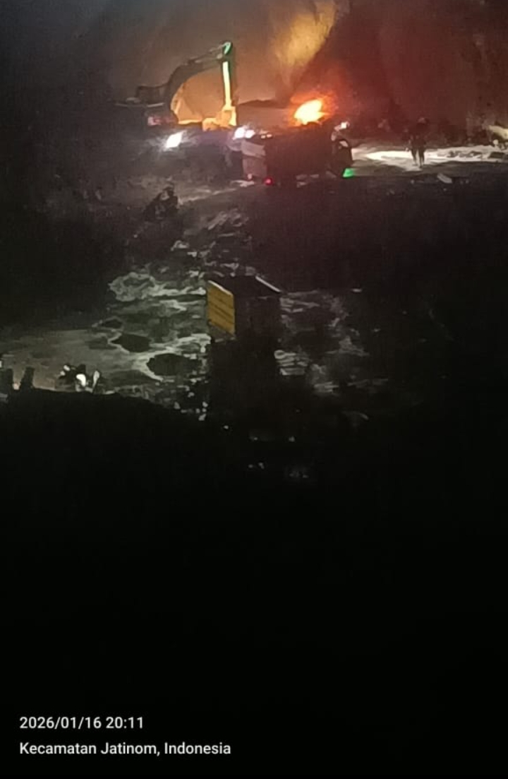 Pengamatan di lapangan menunjukkan bahwa pada Jum’at (16/1/2026) pukul 20.11 WIB, pelaku penambangan yang diduga dikelola PT Saklar di lokasi tersebut masih menjalankan operasinya meskipun sudah melebihi jam kerja yang diizinkan.