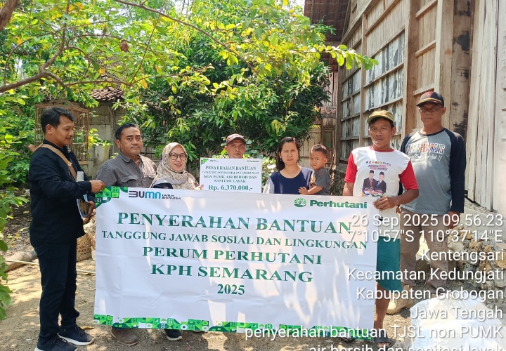 SEMARANG || Portaljatengnews.com – Perum Perhutani Kesatuan Pemangkuan Hutan (KPH) Semarang menyerahkan dana bantuan program Tanggung Jawab Sosial dan Lingkungan (TJSL) untuk pembangunan sanitasi berupa pembuatan jamban bagi 16 (enam belas) Kepala Keluarga di wilayah Kec. Kedungjati, Kabupaten Grobogan dan Kec. Juwangi, Kab. Boyolali, yang masuk dalam wilayah Bagian Kesatuan Pemangkuan Hutan (BKPH) Tempuran, BKPH Kedungjati dan BKPH Padas pada Jumat (26/09/2025).