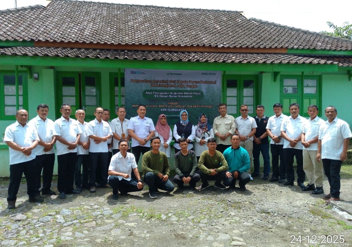 Dalam sambutannya, Rumhayati memberikan apresiasi tinggi atas kinerja jajaran KPH Surakarta yang telah melampaui target produksi getah pinus hingga 104,39% hingga pertengahan Desember.