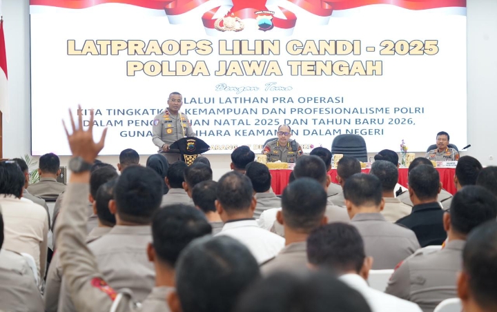 Wakil Kepala Polda Jateng, Brigjen Pol Latif Usman, menyampaikan hal ini saat membuka Latihan Pra Operasi (Latpraops) Lilin Candi 2025 di Mapolda Jateng, Rabu (17/12/2025). Latihan ini diikuti oleh para kepala satuan tugas operasi, personel yang terlibat, serta perwakilan dari 35 Polres di seluruh Jawa Tengah.