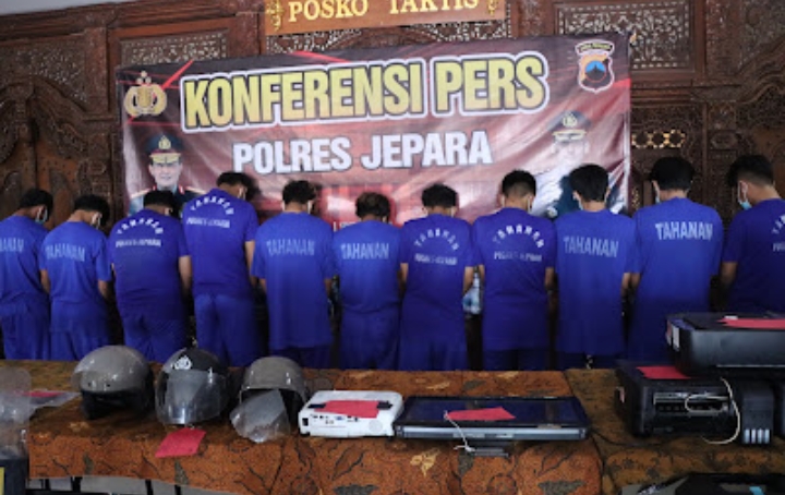 Dalam konferensi pers yang dipimpin oleh Kapolres Jepara AKBP Erick Budi Santoso yang didampingi Wakapolres Jepara Kompol Edy Sutrisno serta Kasatreskrim AKP M. Faizal Wildan Umar Rela dan Kasihumas AKP Dwi Prayitna di Mapolres Jepara, pada Selasa (2/9/2025).