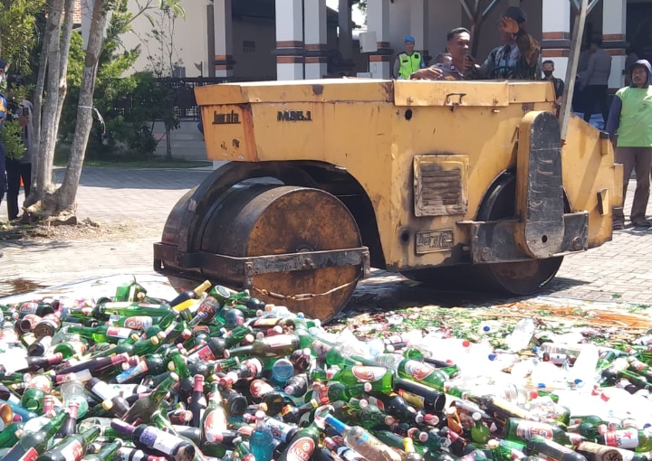 Pemusnahan tersebut diawali dengan penandatanganan berita acara oleh Bupati Demak Eisti’anah, Kapolres Demak AKBP Arrizal Samelino Gandasaputra, dan Dandim 0716/Demak Letkol Arm Dony Romansyah. Setelah itu, ketiganya secara simbolis memusnahkan barang bukti dengan melempar botol miras.