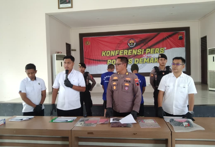 Penangkapan ini diumumkan Kasat Reskrim Polres Demak, Iptu Anggah Mardwi Pitriyono, saat konferensi pers di Pendopo Parama Satwika Mapolres Demak, Rabu (15/10) siang.