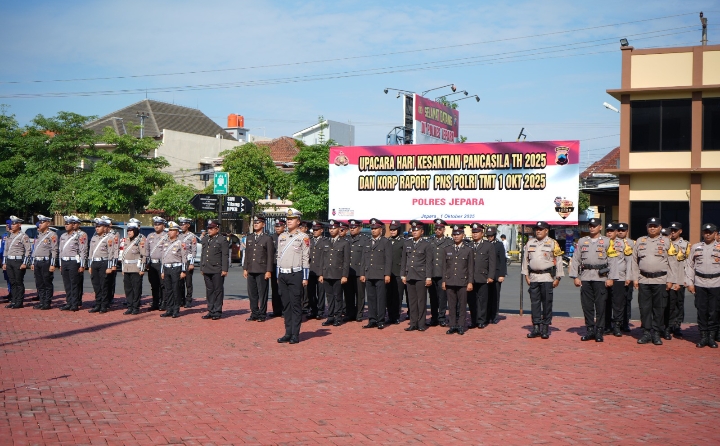Upacara yang diselenggarakan di halaman Mapolres Jepara ini diikuti oleh personel gabungan dari Polres maupun Polsek jajaran, pada Rabu (1/10/2025).
