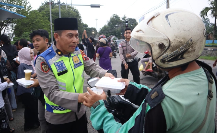 Bersama Bhayangkari dan mahasiswa, Polres Jepara membagikan sekitar 300 paket takjil. Tak sekadar berbagi, namun kegiatan juga diselingi edukasi tertib berlalu lintas.