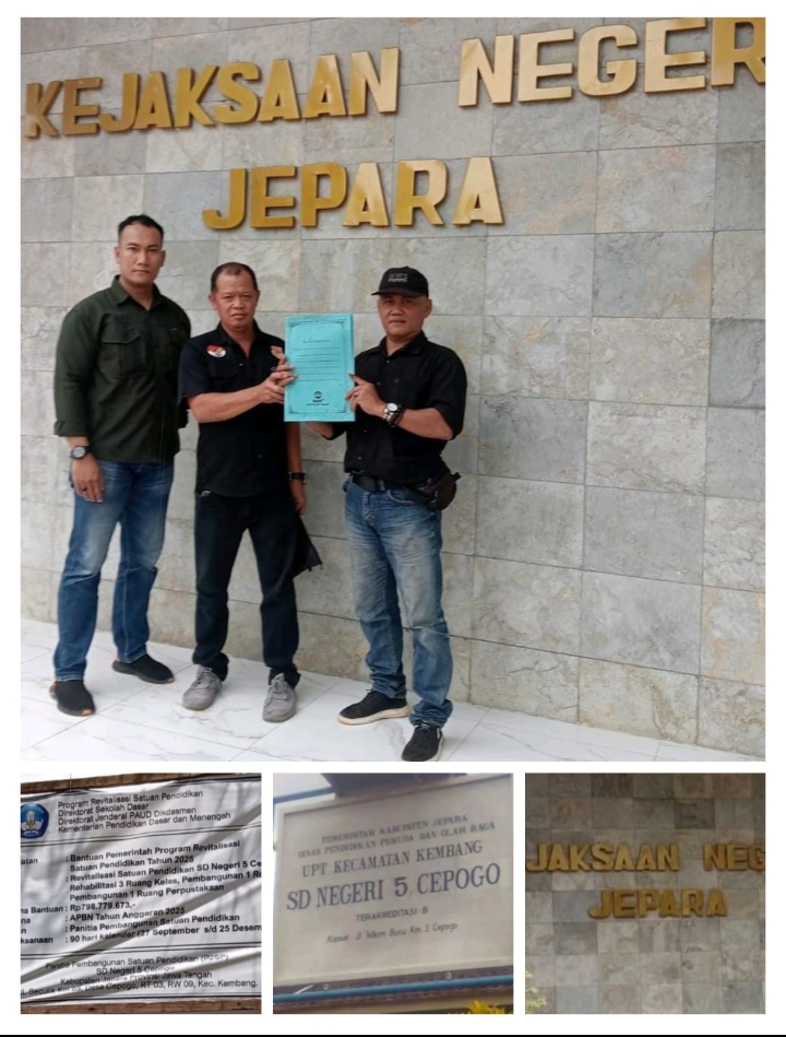 JEPARA || Portaljatengnews.com – Proyek revitalisasi SD Negeri 5 Cepogo senilai Rp798.779.673 terancam mangkrak. DPD Lembaga Aliansi Indonesia Badan Penelitian Aset Negara (LAI BPAN) Provinsi Jawa Tengah melaporkan dugaan penyimpangan dalam proyek tersebut ke Kejaksaan Negeri Jepara.