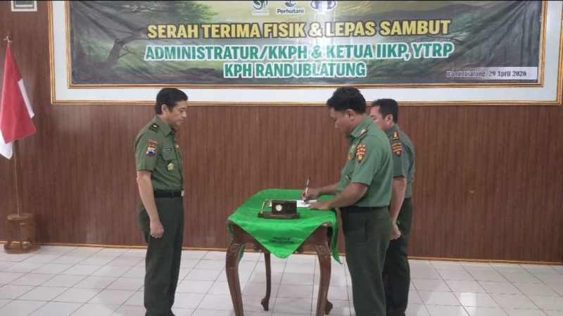 Serah terima fisik dan lepas sambut Administratur/KKPH serta Ketua Ikatan Istri Karyawan Perhutani (IIKP) dan Yayasan Tunas Rimba Perhutani (YTRP) KPH Randublatung digelar di aula kantor KPH Randublatung, Rabu (29/4/2026).