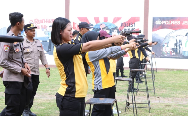 Latihan menembak dipimpin langsung oleh Kapolres Jepara AKBP Erick Budi Santoso yang diwakili Wakapolres Jepara Kompol Edy Sutrisno dengan diikuti pejabat utama, peserta sebanyak 75 personel Polres Jepara dan polsek jajaran.