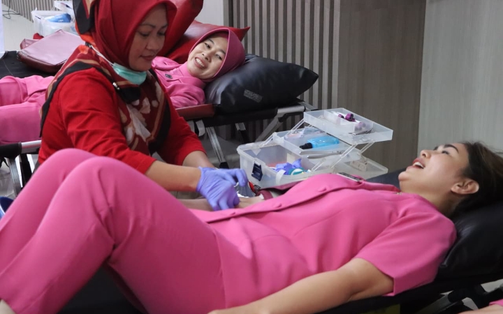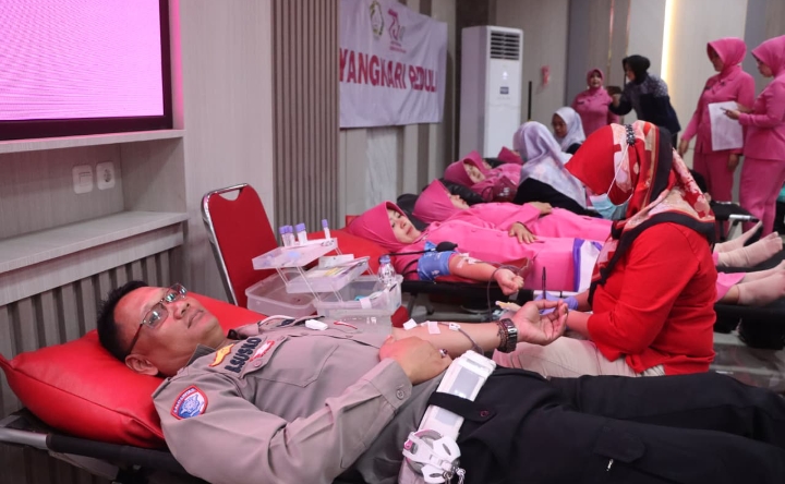 Donor darah ini juga menjadi bagian dari rangkaian peringatan Hari Kesatuan Gerak Bhayangkari Ke-73 dan Hari Ulang Tahun (HUT) Polwan Ke-77.